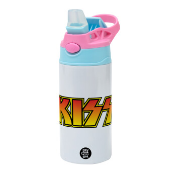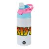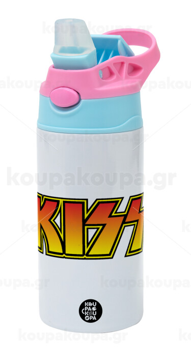 KISS, Children's hot water bottle, stainless steel, with safety straw, Pink/BlueCiel (360ml) BPA FREE