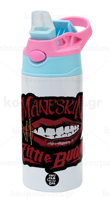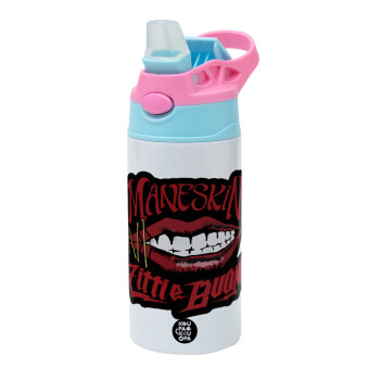 Maneskin lips, Children's hot water bottle, stainless steel, with safety straw, Pink/BlueCiel (360ml) BPA FREE