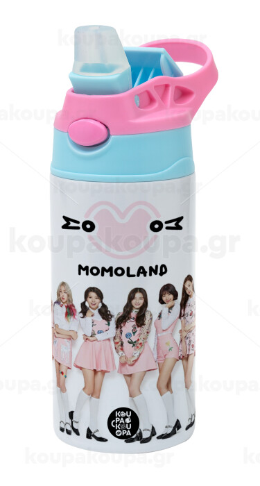 Momoland pink, Children's hot water bottle, stainless steel, with safety straw, Pink/BlueCiel (360ml) BPA FREE