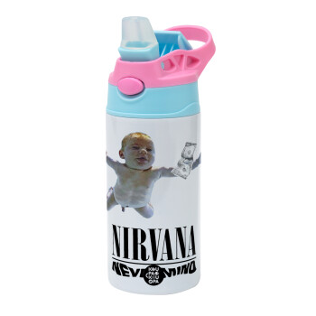 Nirvana nevermind, Children's hot water bottle, stainless steel, with safety straw, Pink/BlueCiel (360ml) BPA FREE