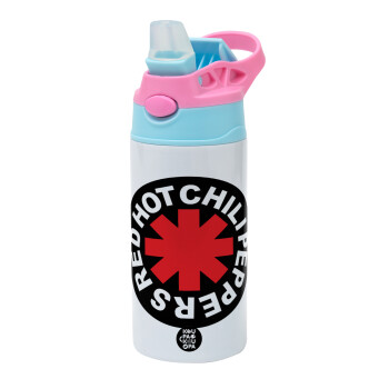 Red Hot Chili Peppers, Children's hot water bottle, stainless steel, with safety straw, Pink/BlueCiel (360ml) BPA FREE