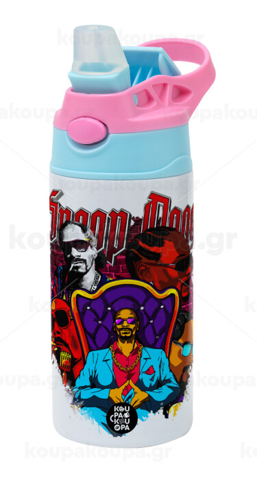 Snoop Dogg, Children's hot water bottle, stainless steel, with safety straw, Pink/BlueCiel (360ml) BPA FREE