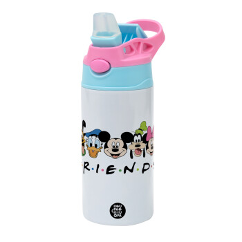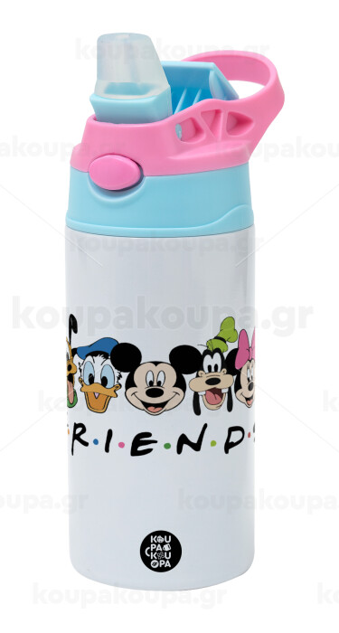 Friends characters, Children's hot water bottle, stainless steel, with safety straw, Pink/BlueCiel (360ml) BPA FREE