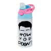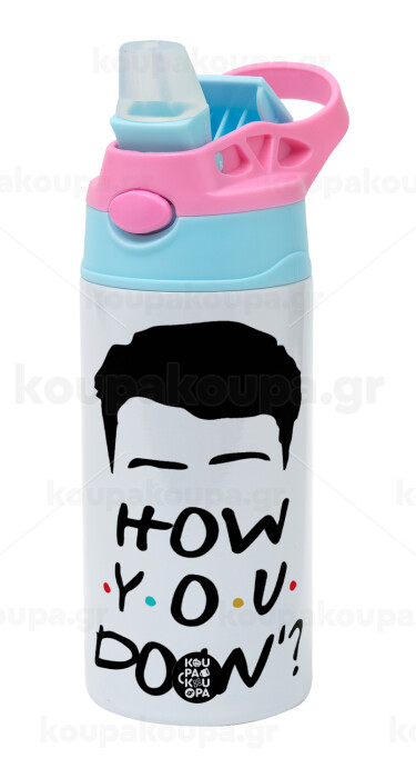 Friends how you doin?, Children's hot water bottle, stainless steel, with safety straw, Pink/BlueCiel (360ml) BPA FREE