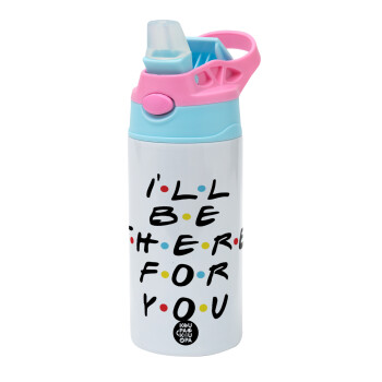 Friends i i'll be there for you, Children's hot water bottle, stainless steel, with safety straw, Pink/BlueCiel (360ml) BPA FREE