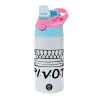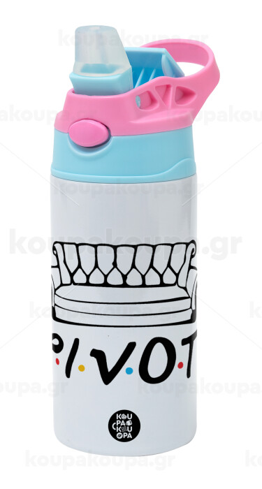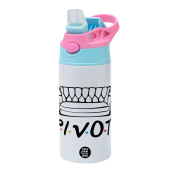 Friends Pivot, Children's hot water bottle, stainless steel, with safety straw, Pink/BlueCiel (360ml) BPA FREE