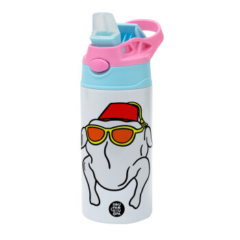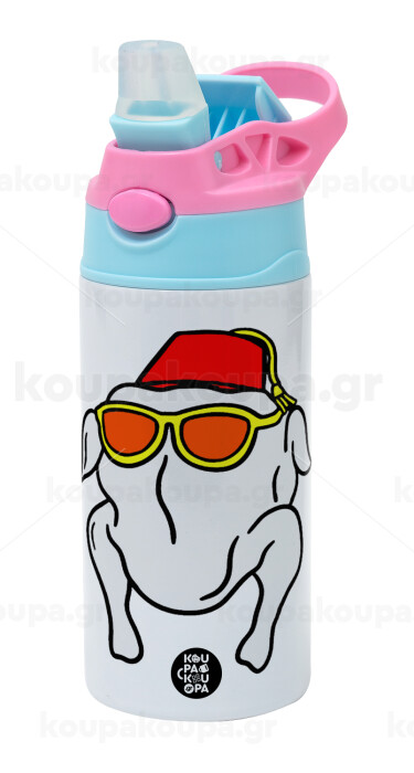 Friends turkey, Children's hot water bottle, stainless steel, with safety straw, Pink/BlueCiel (360ml) BPA FREE