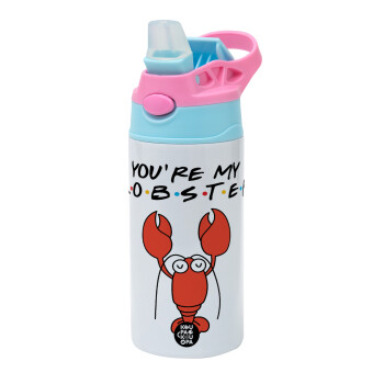Friends you're my lobster, Children's hot water bottle, stainless steel, with safety straw, Pink/BlueCiel (360ml) BPA FREE