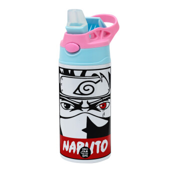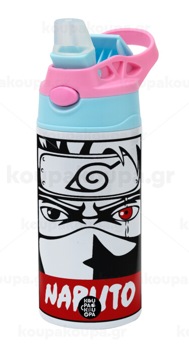 Naruto anime, Children's hot water bottle, stainless steel, with safety straw, Pink/BlueCiel (360ml) BPA FREE