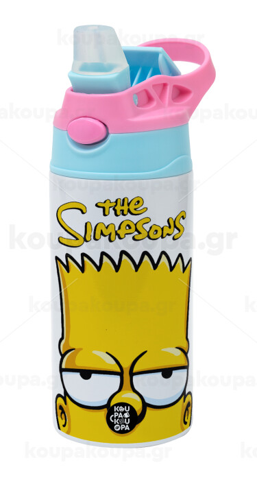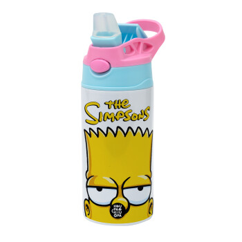 The Simpsons Bart, Children's hot water bottle, stainless steel, with safety straw, Pink/BlueCiel (360ml) BPA FREE