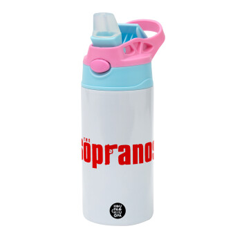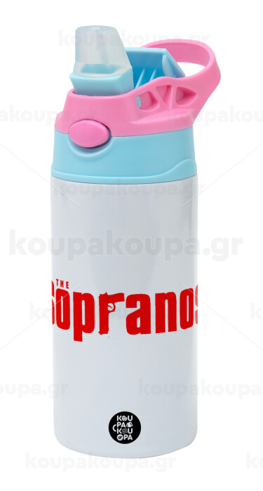 The Sopranos, Children's hot water bottle, stainless steel, with safety straw, Pink/BlueCiel (360ml) BPA FREE