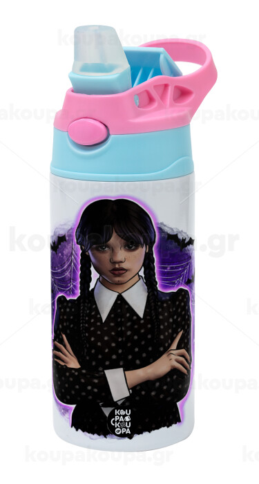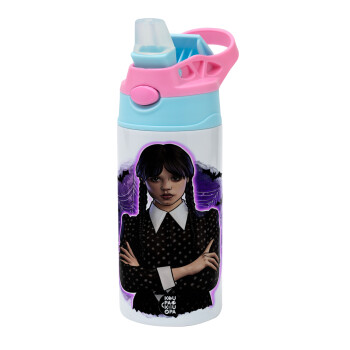 Wednesday moonlight, Children's hot water bottle, stainless steel, with safety straw, Pink/BlueCiel (360ml) BPA FREE