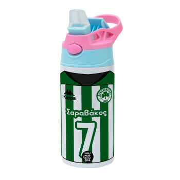 Παναθηναϊκός εμφάνιση, Children's hot water bottle, stainless steel, with safety straw, Pink/BlueCiel (360ml) BPA FREE