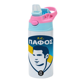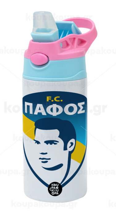 Πάφος FC, Children's hot water bottle, stainless steel, with safety straw, Pink/BlueCiel (360ml) BPA FREE