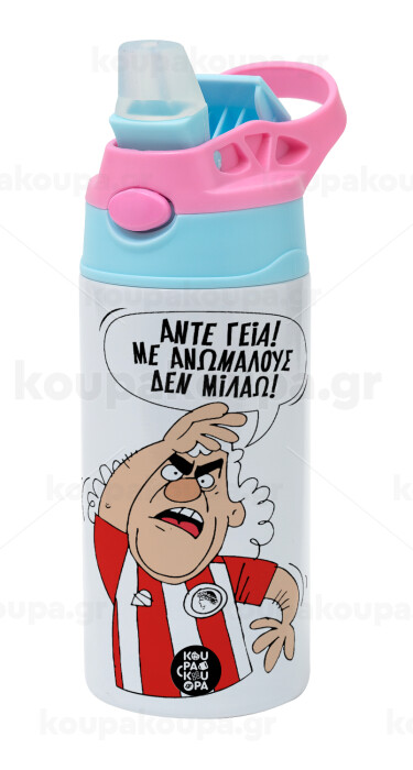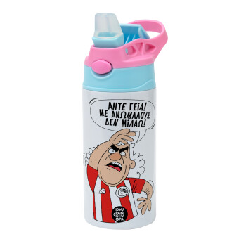 Τάκης, Άντε γεια, με ανώμαλους δεν μιλάω!, Children's hot water bottle, stainless steel, with safety straw, Pink/BlueCiel (360ml) BPA FREE