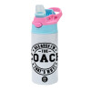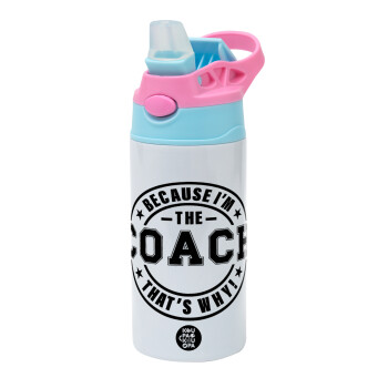Because i'm the Coach, Children's hot water bottle, stainless steel, with safety straw, Pink/BlueCiel (360ml) BPA FREE