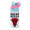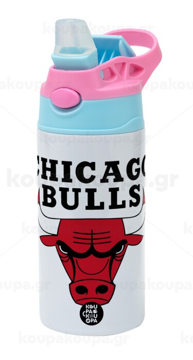 Chicago Bulls, Children's hot water bottle, stainless steel, with safety straw, Pink/BlueCiel (360ml) BPA FREE