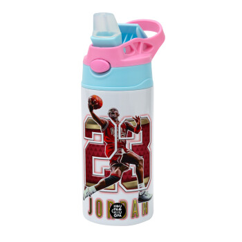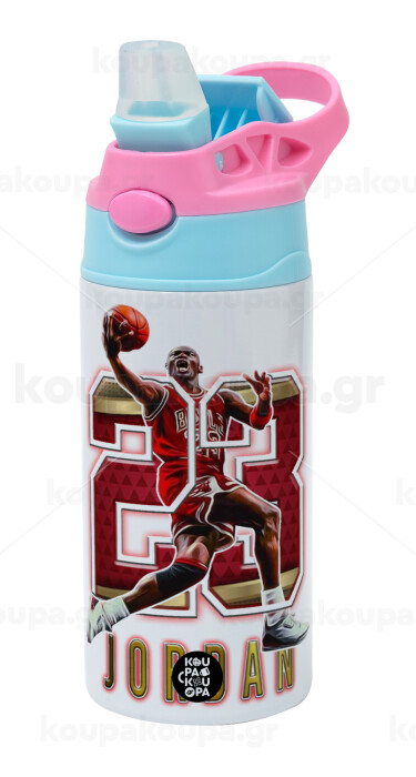 Jordan 23, Children's hot water bottle, stainless steel, with safety straw, Pink/BlueCiel (360ml) BPA FREE