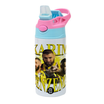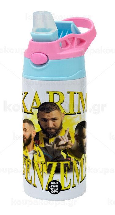 Karim Benzema, Children's hot water bottle, stainless steel, with safety straw, Pink/BlueCiel (360ml) BPA FREE