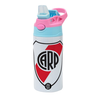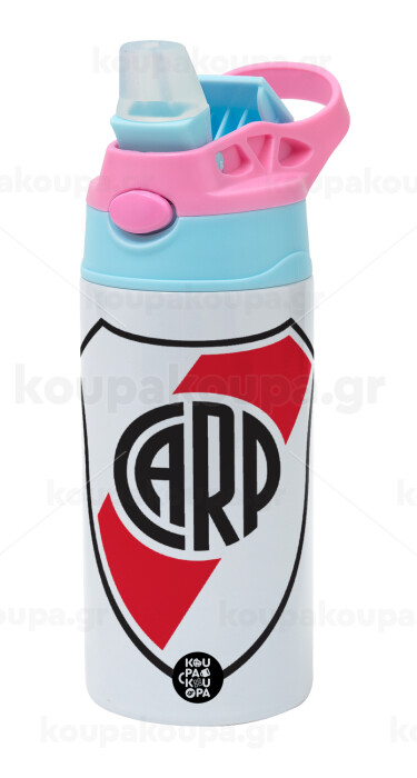 River Plate, Children's hot water bottle, stainless steel, with safety straw, Pink/BlueCiel (360ml) BPA FREE