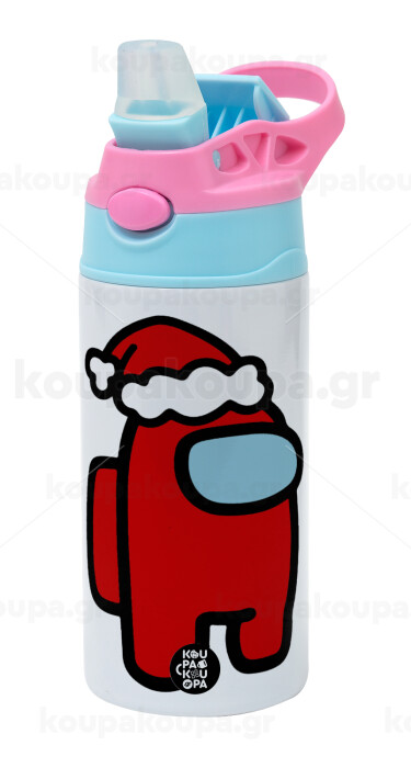 Among US Santa, Children's hot water bottle, stainless steel, with safety straw, Pink/BlueCiel (360ml) BPA FREE