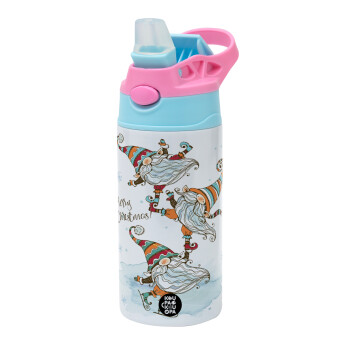 Christmas nordic gnomes, Children's hot water bottle, stainless steel, with safety straw, Pink/BlueCiel (360ml) BPA FREE