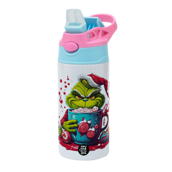 Giggling Grinchy Galore, Children's hot water bottle, stainless steel, with safety straw, Pink/BlueCiel (360ml) BPA FREE