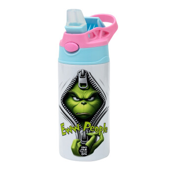 Grinch, eww people, Children's hot water bottle, stainless steel, with safety straw, Pink/BlueCiel (360ml) BPA FREE