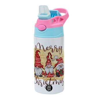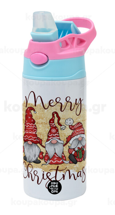 Xmas Elves, Children's hot water bottle, stainless steel, with safety straw, Pink/BlueCiel (360ml) BPA FREE