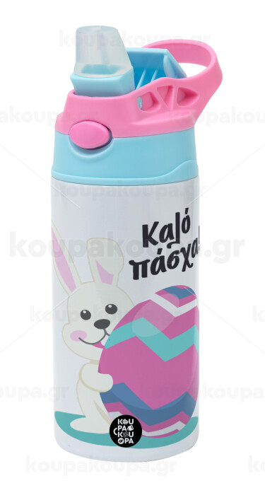 Καλό πάσχα, Children's hot water bottle, stainless steel, with safety straw, Pink/BlueCiel (360ml) BPA FREE