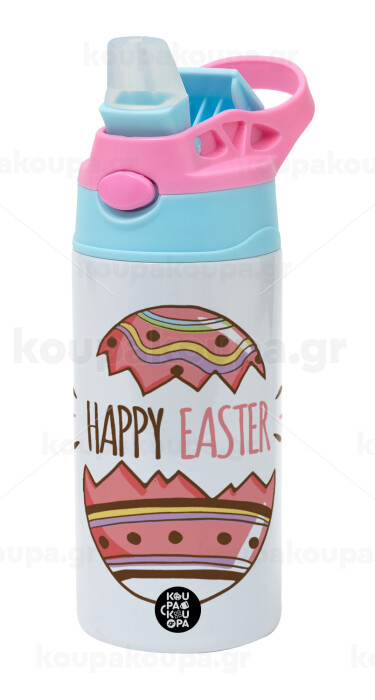 Happy easter egg, Children's hot water bottle, stainless steel, with safety straw, Pink/BlueCiel (360ml) BPA FREE
