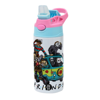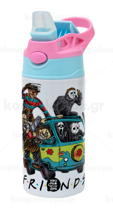 Halloween Friends Scooby Doo, Children's hot water bottle, stainless steel, with safety straw, Pink/BlueCiel (360ml) BPA FREE