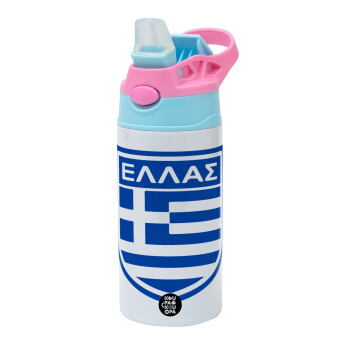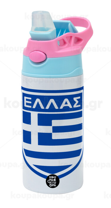Hellas, Children's hot water bottle, stainless steel, with safety straw, Pink/BlueCiel (360ml) BPA FREE