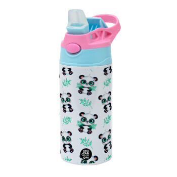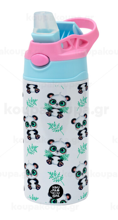Panda, Children's hot water bottle, stainless steel, with safety straw, Pink/BlueCiel (360ml) BPA FREE