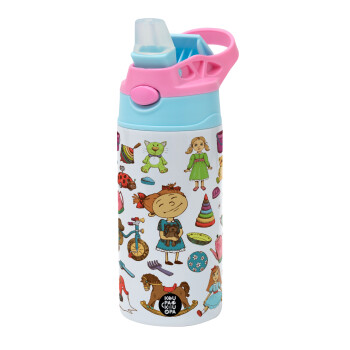 Toys Girl, Children's hot water bottle, stainless steel, with safety straw, Pink/BlueCiel (360ml) BPA FREE