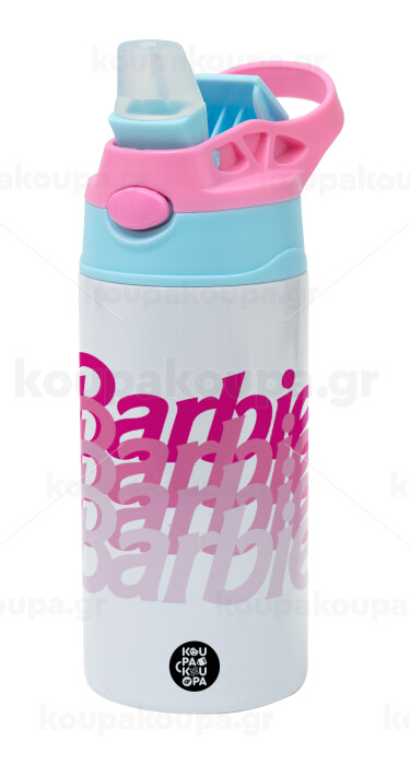 Barbie repeat, Children's hot water bottle, stainless steel, with safety straw, Pink/BlueCiel (360ml) BPA FREE