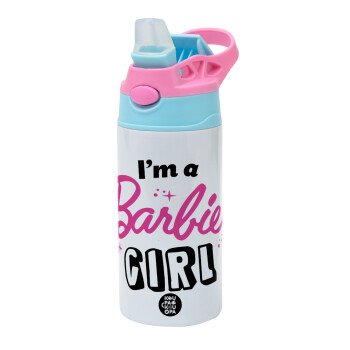 I'm Barbie girl, Children's hot water bottle, stainless steel, with safety straw, Pink/BlueCiel (360ml) BPA FREE