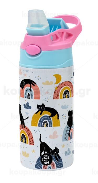 Γατούλες, Children's hot water bottle, stainless steel, with safety straw, Pink/BlueCiel (360ml) BPA FREE