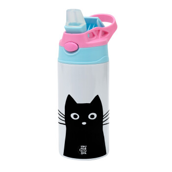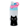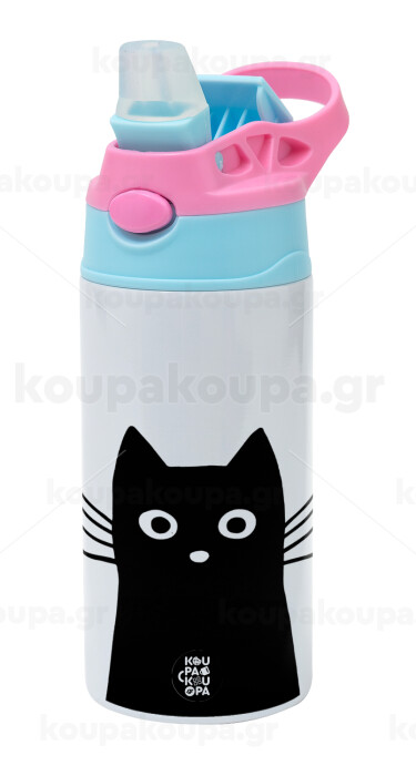 Black Cat, Children's hot water bottle, stainless steel, with safety straw, Pink/BlueCiel (360ml) BPA FREE