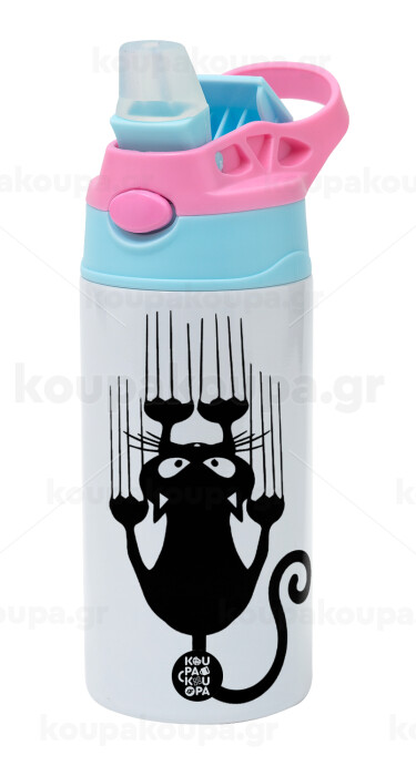 Cat scratching, Children's hot water bottle, stainless steel, with safety straw, Pink/BlueCiel (360ml) BPA FREE
