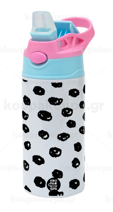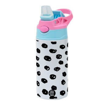 Doodle Dots, Children's hot water bottle, stainless steel, with safety straw, Pink/BlueCiel (360ml) BPA FREE