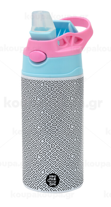 Doodle Maze, Children's hot water bottle, stainless steel, with safety straw, Pink/BlueCiel (360ml) BPA FREE