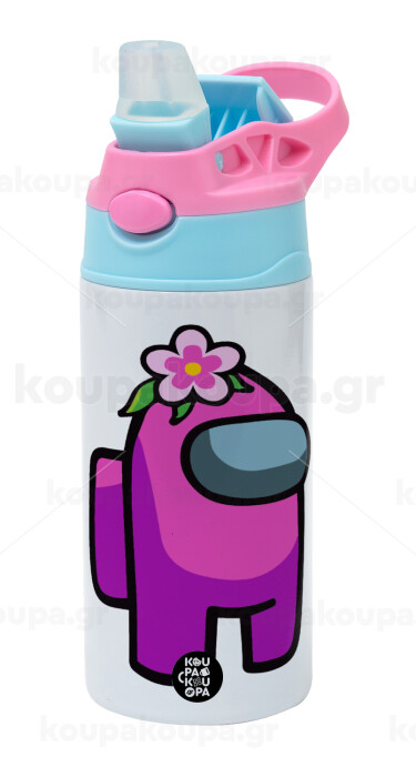 Among US girl, Children's hot water bottle, stainless steel, with safety straw, Pink/BlueCiel (360ml) BPA FREE