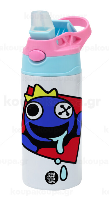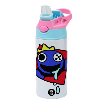 Blue, Rainbow friends, Children's hot water bottle, stainless steel, with safety straw, Pink/BlueCiel (360ml) BPA FREE