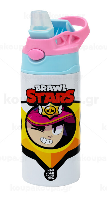 Brawl Stars Fang, Children's hot water bottle, stainless steel, with safety straw, Pink/BlueCiel (360ml) BPA FREE