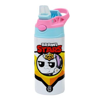 Brawl Stars Kit, Children's hot water bottle, stainless steel, with safety straw, Pink/BlueCiel (360ml) BPA FREE