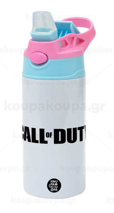 Call of Duty, Children's hot water bottle, stainless steel, with safety straw, Pink/BlueCiel (360ml) BPA FREE