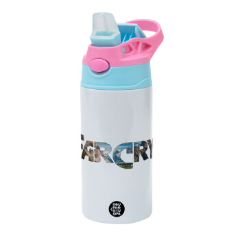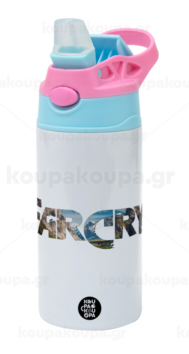 Farcry, Children's hot water bottle, stainless steel, with safety straw, Pink/BlueCiel (360ml) BPA FREE