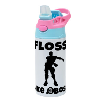 Fortnite Floss Like a Boss, Children's hot water bottle, stainless steel, with safety straw, Pink/BlueCiel (360ml) BPA FREE