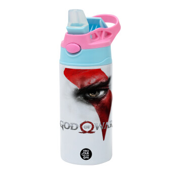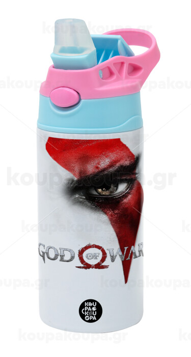 God of war Stratos, Children's hot water bottle, stainless steel, with safety straw, Pink/BlueCiel (360ml) BPA FREE